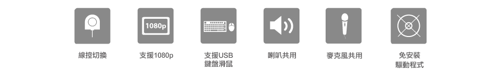使用1组屏幕(HDMI接口)、键盘(USB接口)、鼠标(USB接口)、喇叭及麦克风,即可切换控制2台计算机。 |