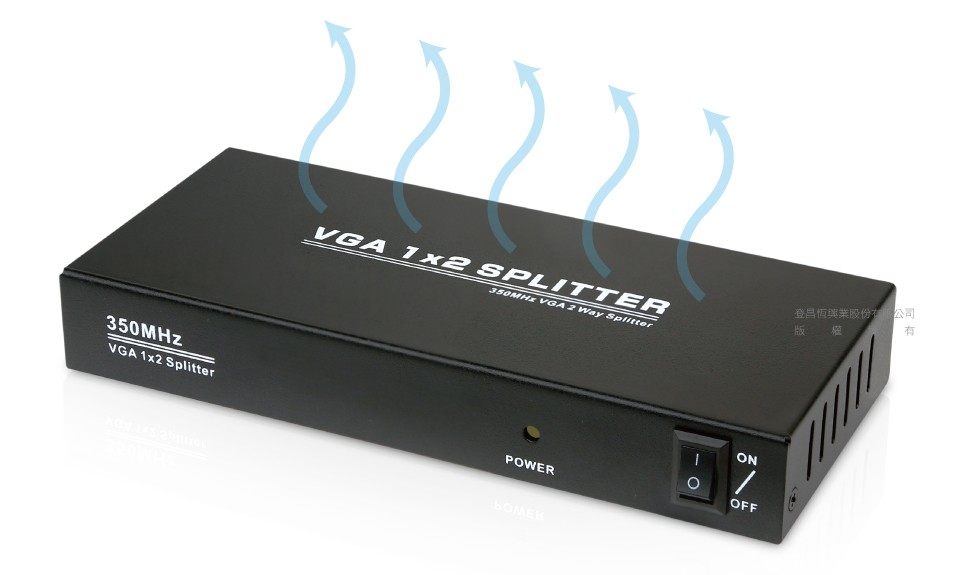 連接1組VGA訊號來源,同步輸出至2台VGA螢幕/投影機。 | |||||||||