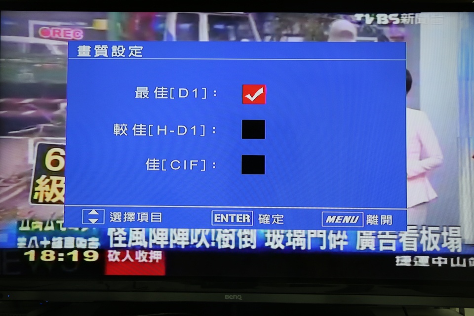 畫質設定,最高D1 720 x 480,也是AV端子最高的解析度。 |